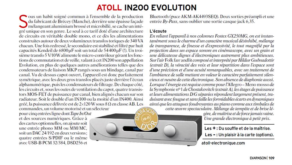 Test Atoll IN200 Evolution by Haute-Fidélité