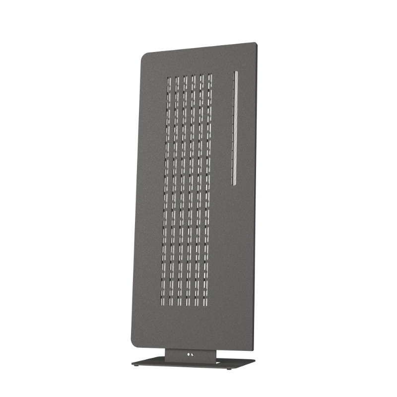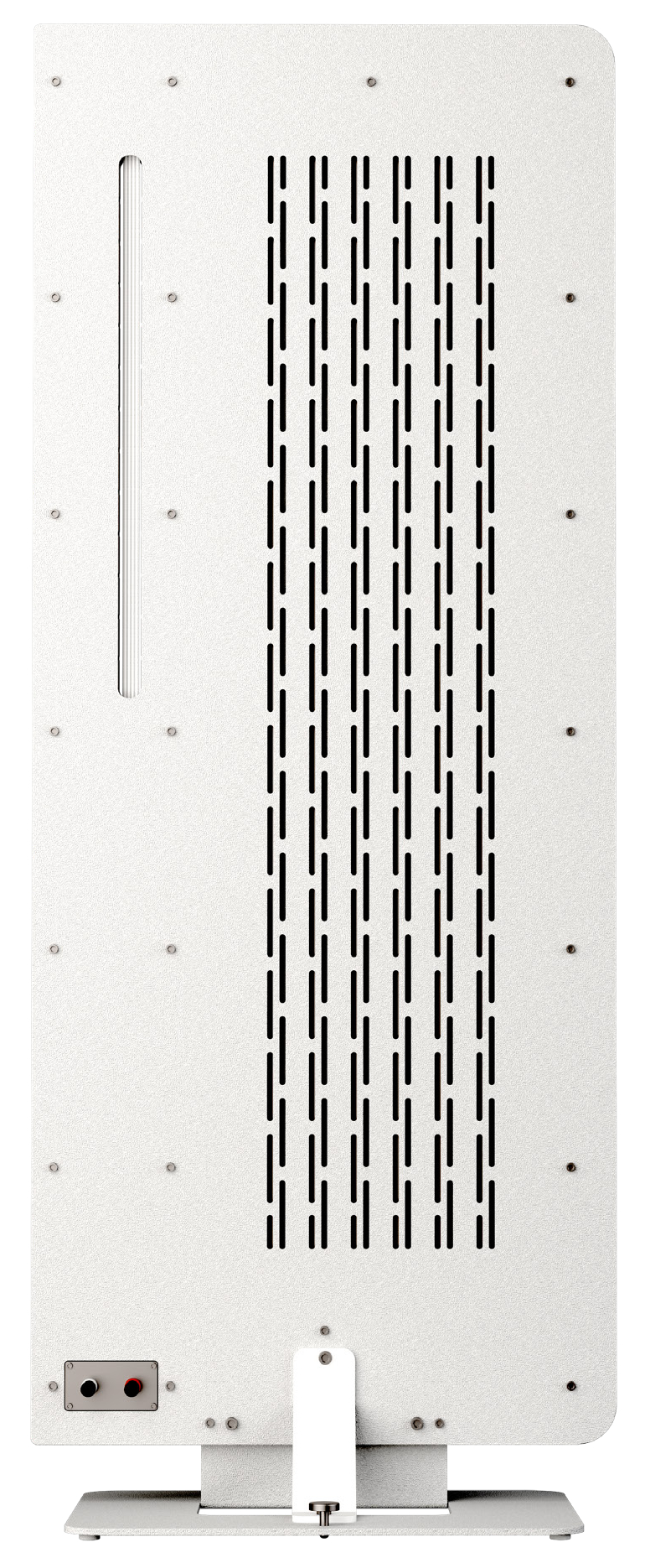 - Une structure mécanique modulaire. Elle est composée de l’assemblage d’une structure en MDF, le chassis des membranes est en Composite HPL ultra rigide et les tôles en acier de 2mm sont maintenus serrés par de nombreuses vis mécaniques. Cet ensemble est parfaitement rigide et non raisonnant, c’est une référence mécanique qui garanti l’absence de coloration et le respect des timbres. De plus, cet assemblage permet le démontage des haut-parleurs pour un remplacement très facile des membranes.